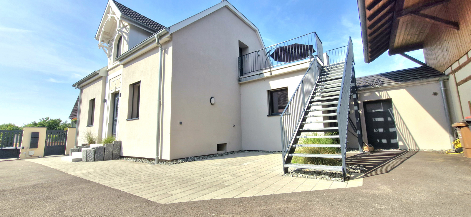 Grande cour commune avec portail automatisé.