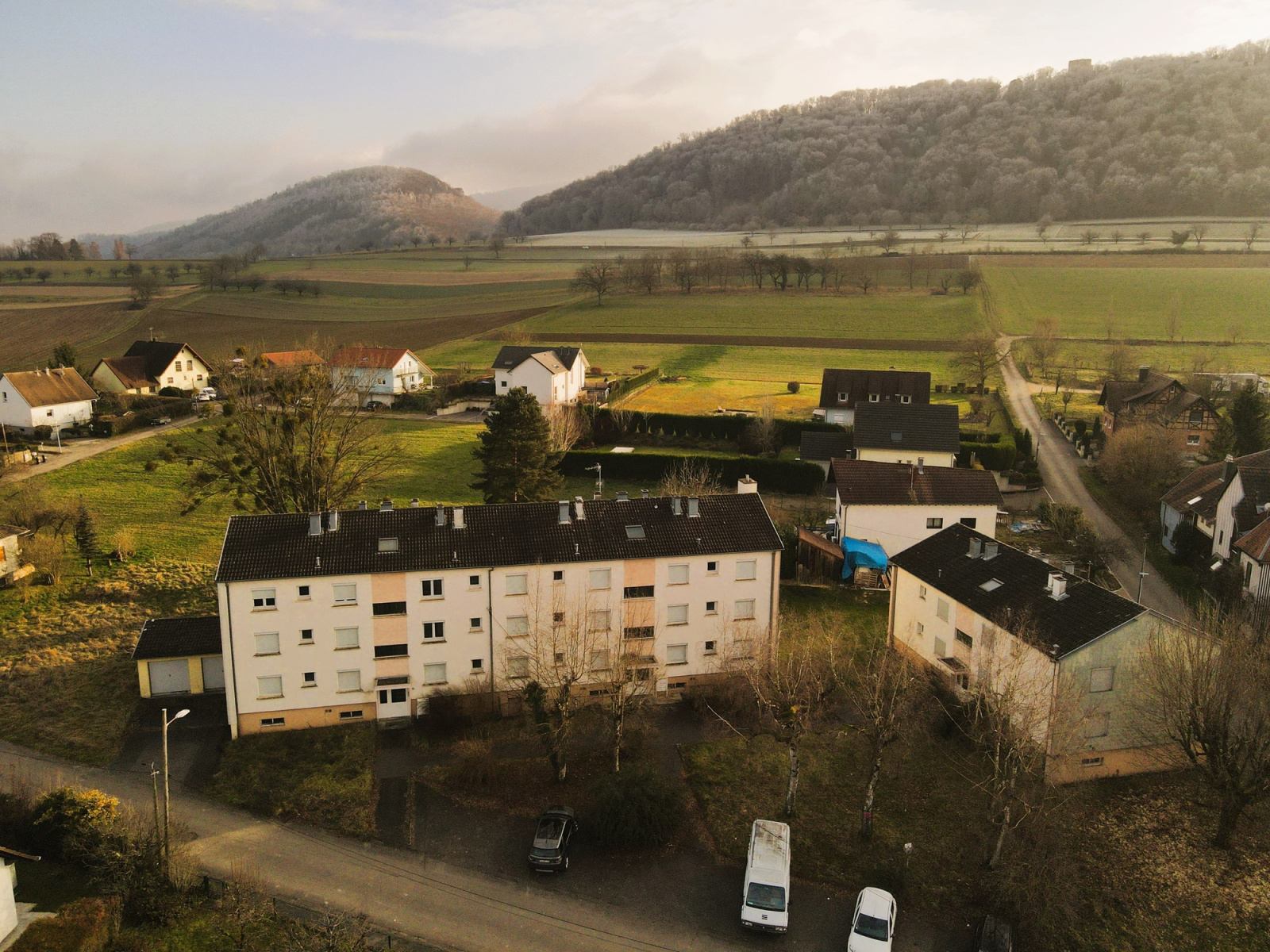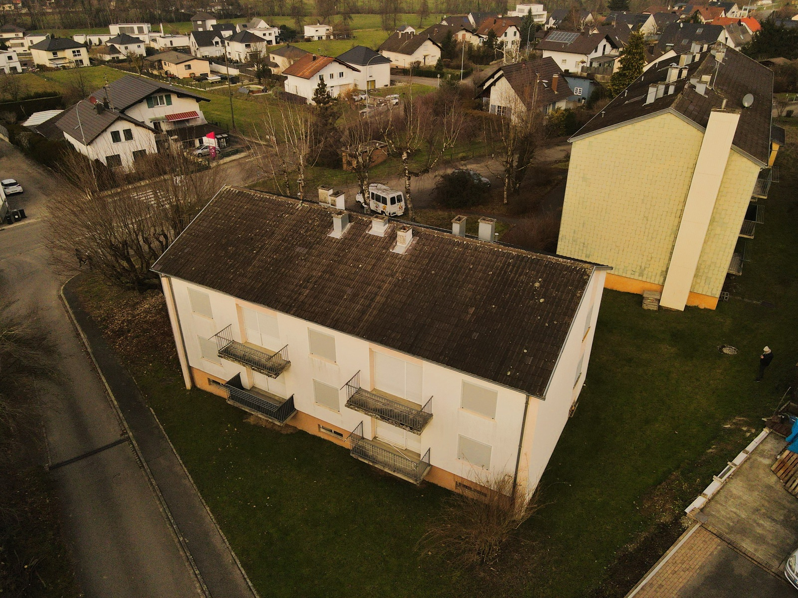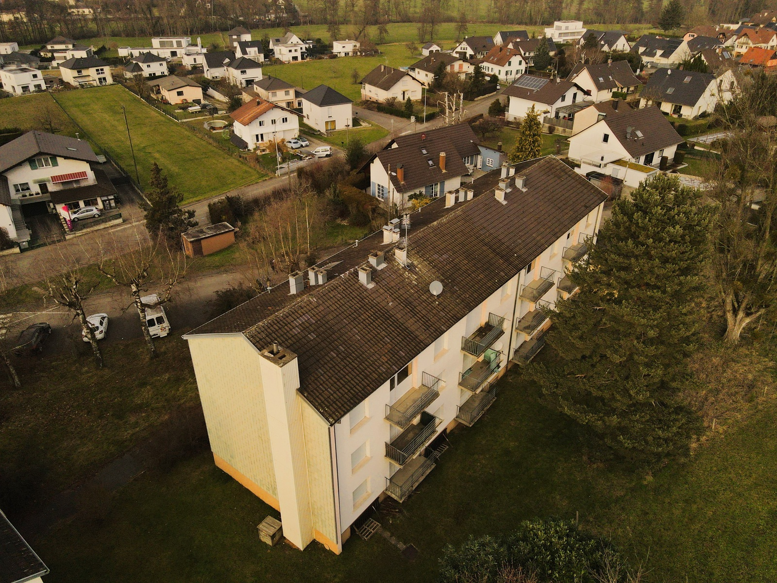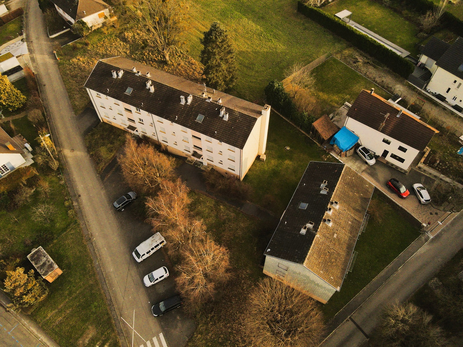 - Dans le petit immeuble, 4 logements (deux F4 de 75m², et deux F3 de 65m²)